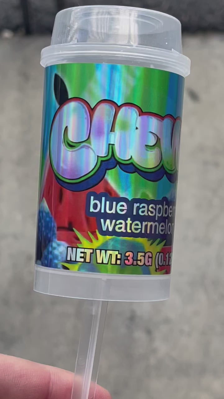 Push Pop Chewz Blue Raspberry Watermelon 3.5g Container Holographic sticker Ring Pop